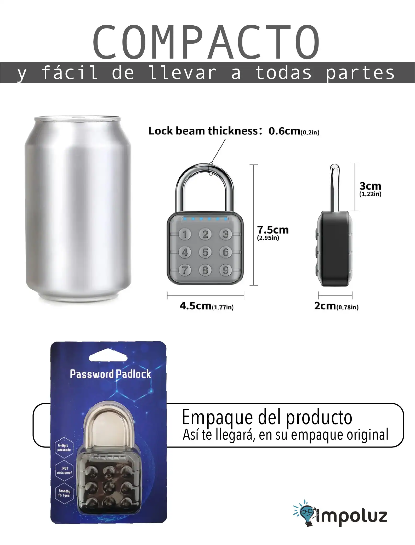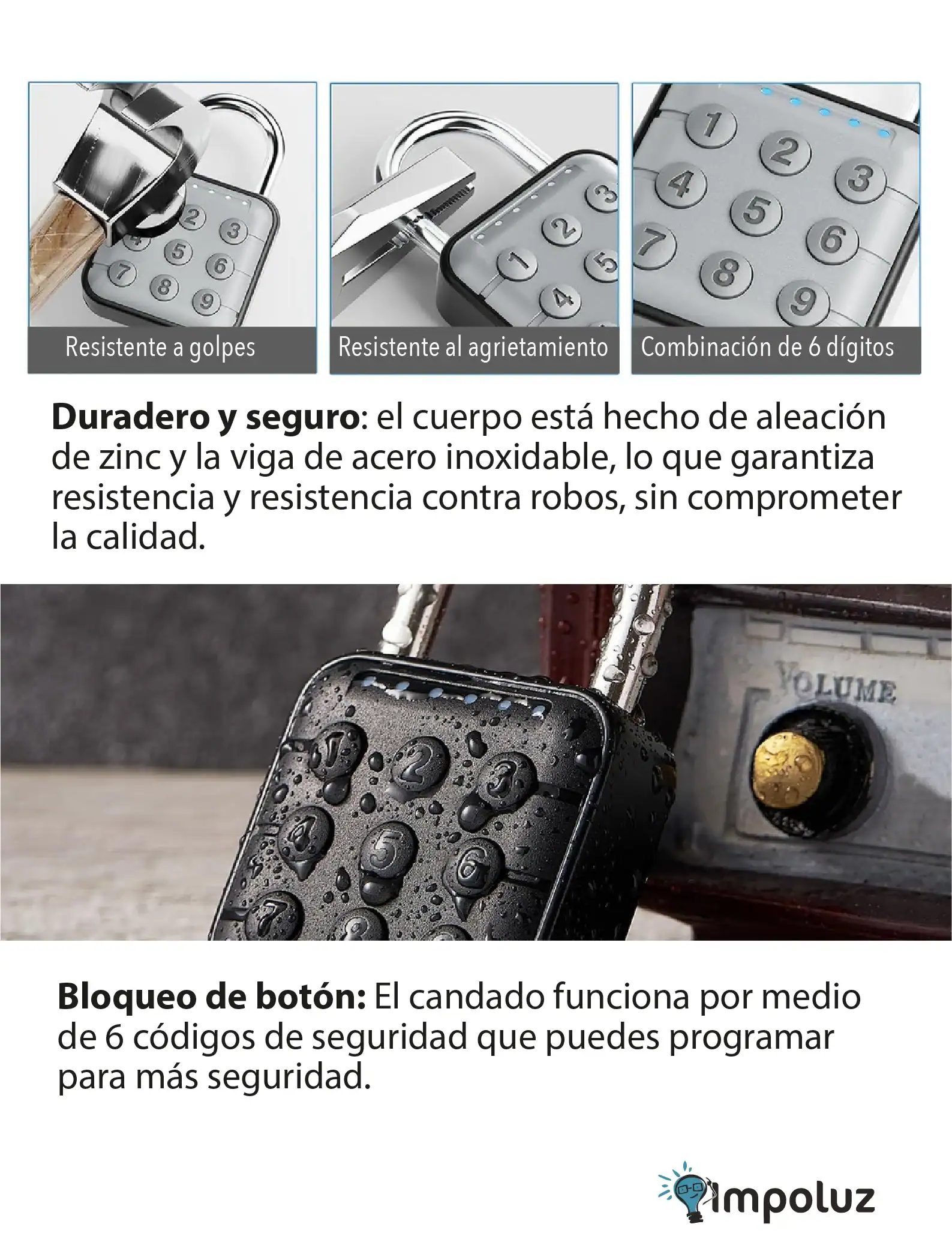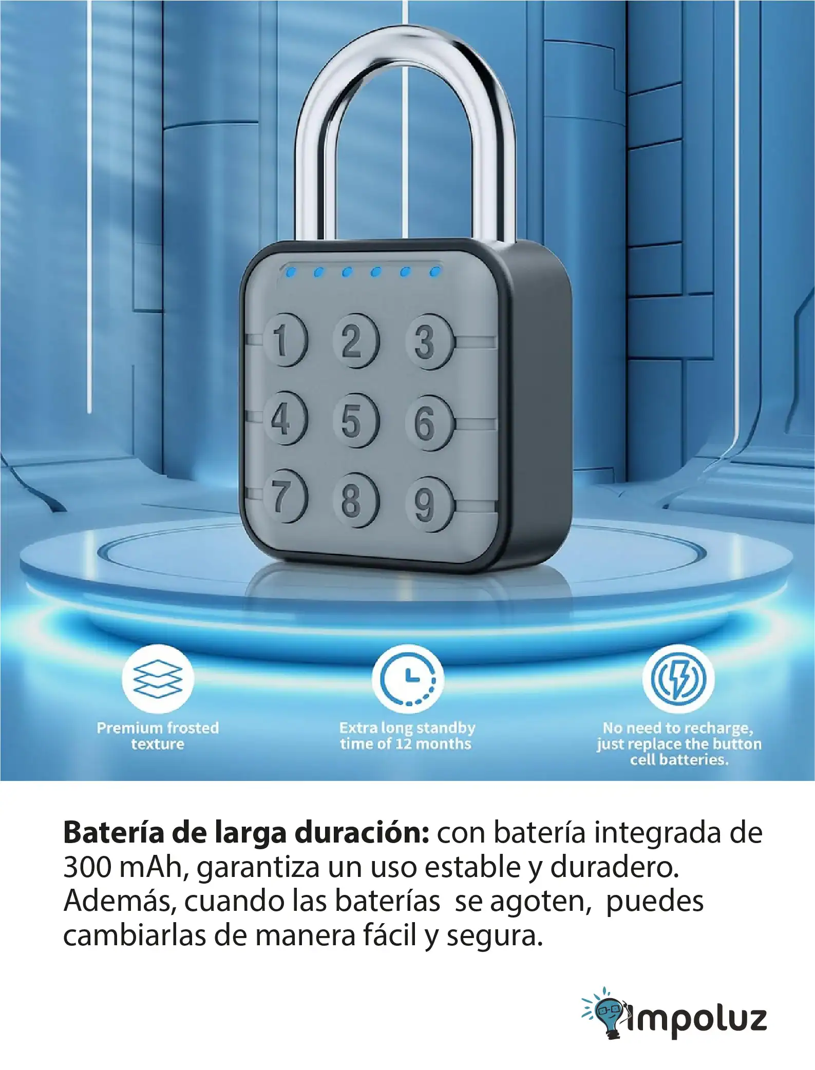 Candado inteligente con teclado numérico retroiluminado, perfecto como candado para maletas y equipaje de viaje. Su diseño compacto y funcionalidad dual lo convierte en la opción más versátil.