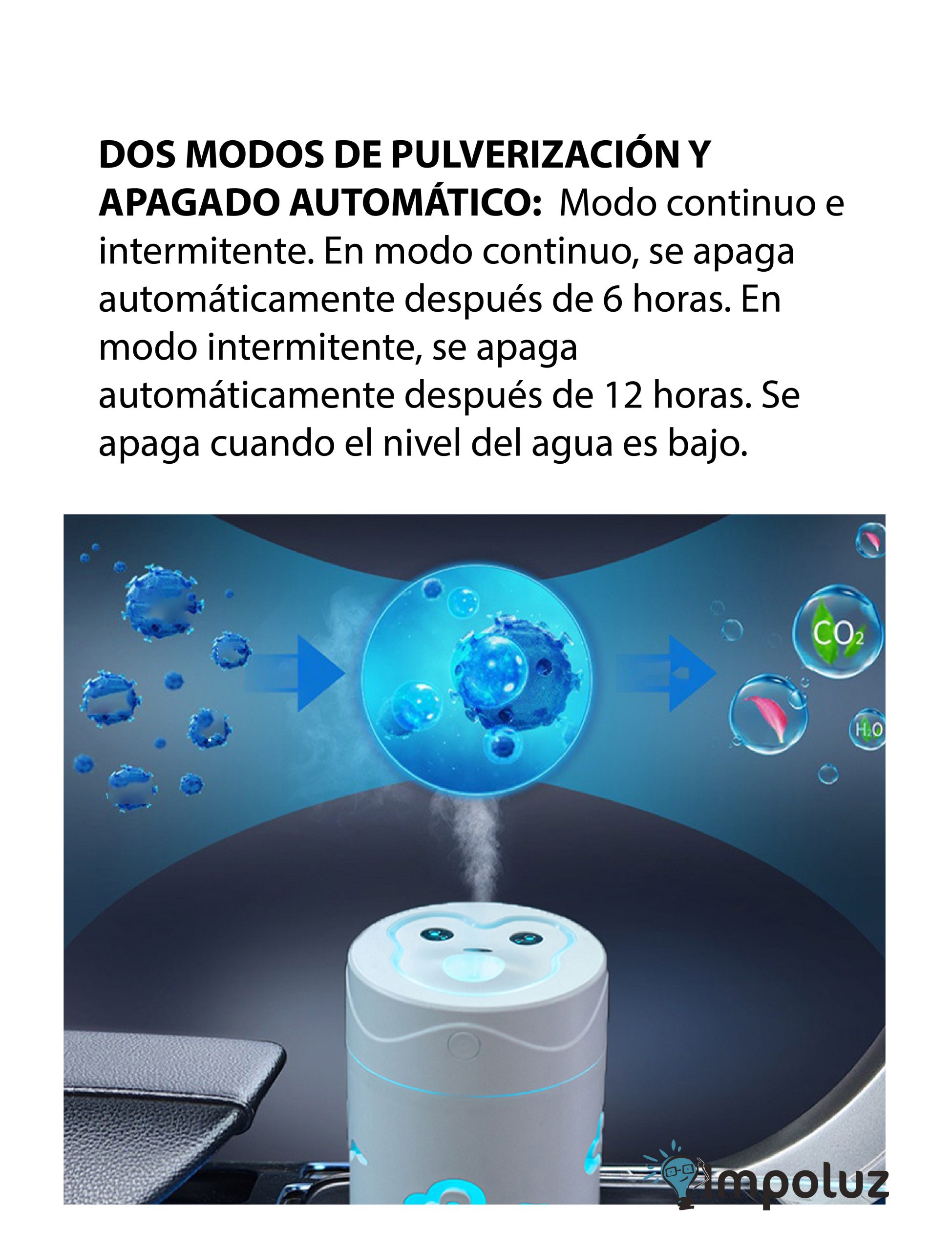 - Difusión de aromas: Una característica adicional de nuestro dispositivo es su capacidad para difundir aromas personalizados. Puedes agregar unas gotas de tu aceite esencial favorito al agua del tanque para crear un ambiente único y relajante en tu espacio.