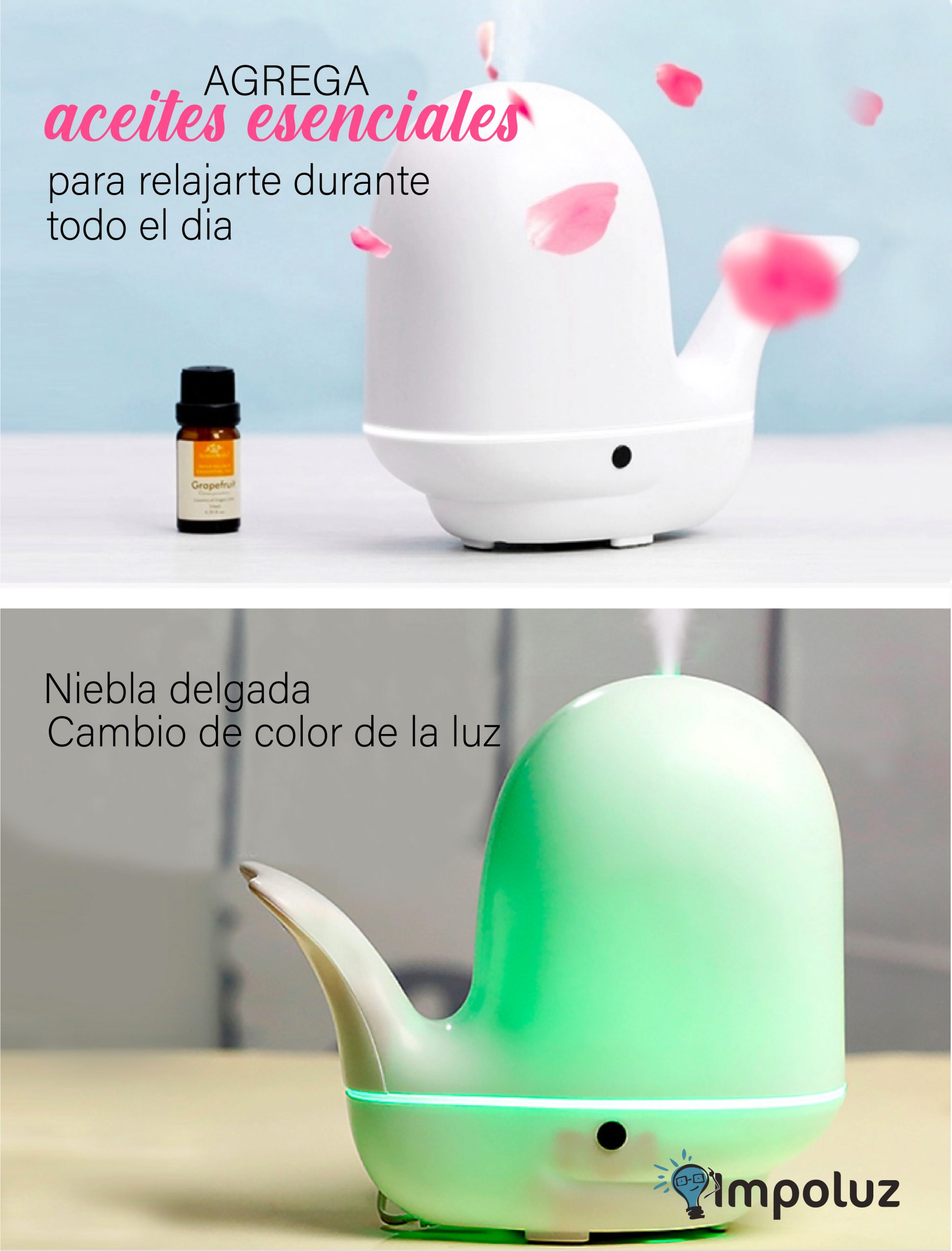 ¡Transforma el ambiente de las habitaciones de tus pequeños con nuestros adorables humidificadores de aire! Disponibles en forma de ballenita y elefante, estos humidificadores no solo son una manera encantadora de decorar, sino que también brindan una sensación de frescura y tranquilidad con su suave vapor y aromas esenciales. Perfectos para relajar a tus hijos y mantener su estado de ánimo en calma, estos humidificadores crean un ambiente acogedor y relajante en cualquier momento del día.