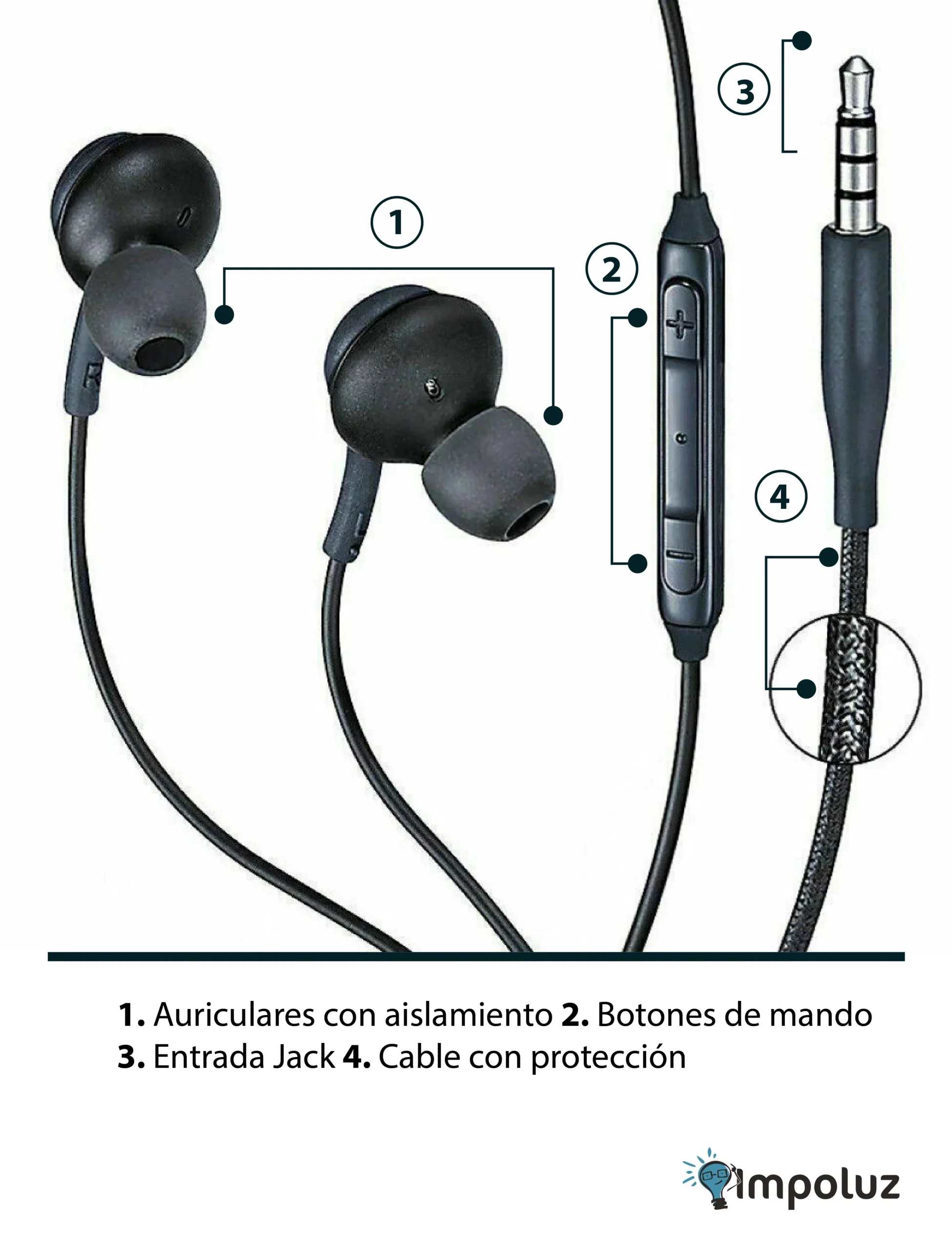 • Control: 3 botones (reproducir / pausa, subir volumen, bajar volumen)