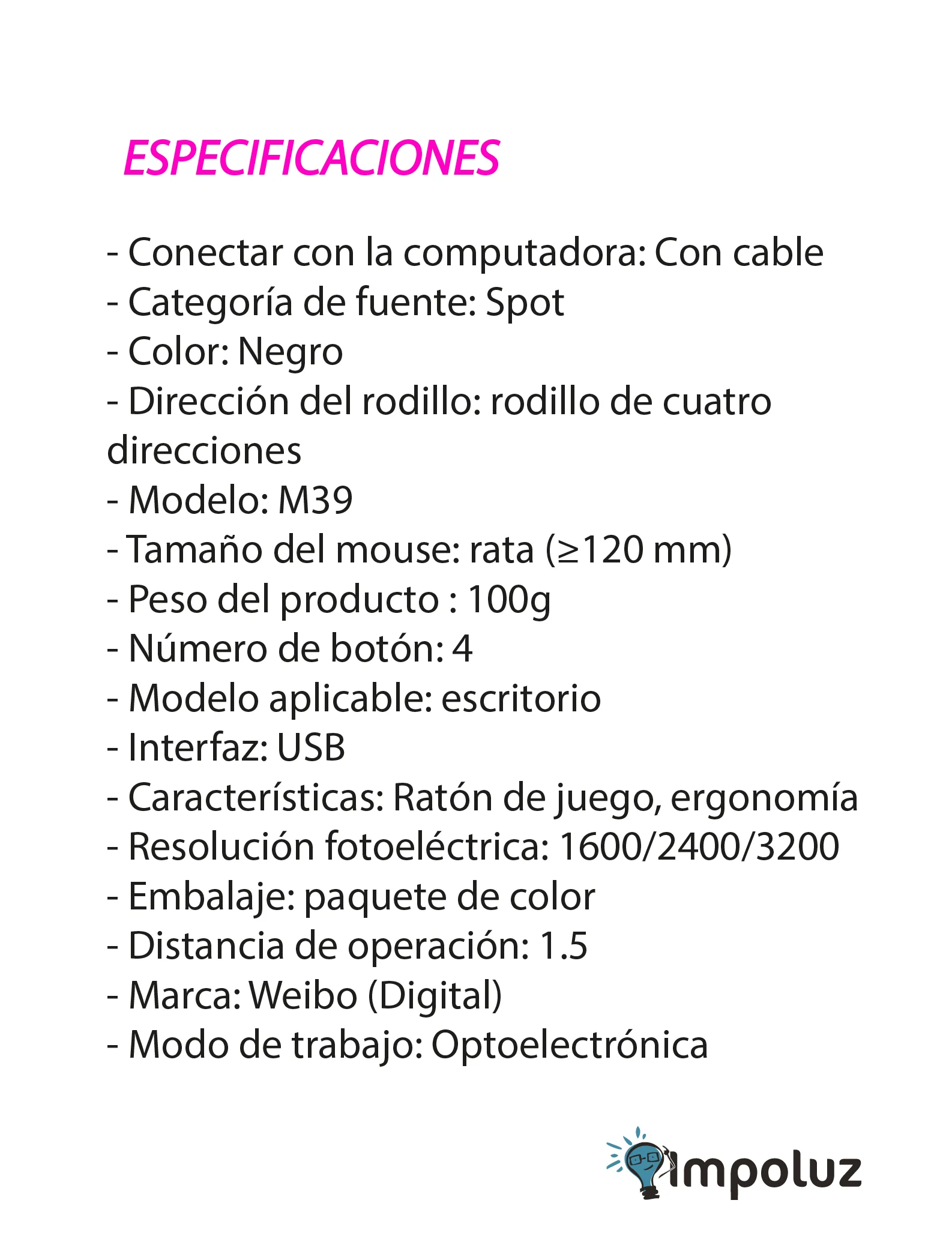 • Sensor óptico de alta precisión: El sensor óptico de alta precisión garantiza un seguimiento preciso del movimiento del mouse en todo momento.