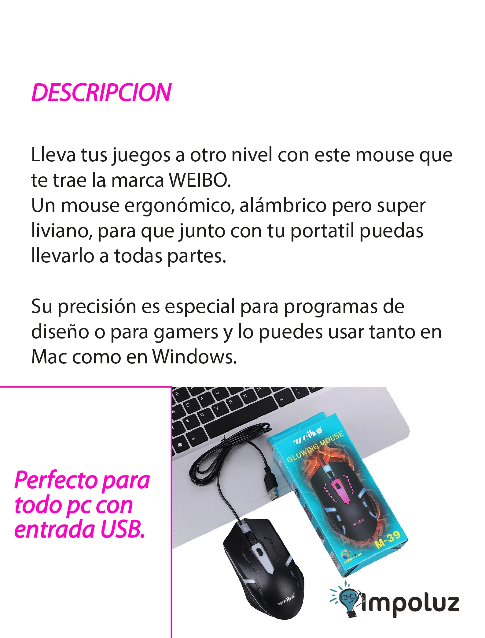 • Compatibilidad universal: Compatible con una amplia variedad de sistemas operativos y dispositivos, incluyendo PC, laptops y consolas de juegos.