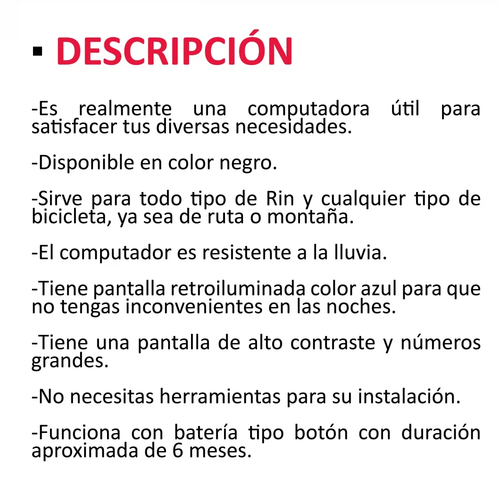 - Compatibilidad universal: Diseñado para adaptarse a la mayoría de las bicicletas, el velocímetro es compatible con una amplia gama de modelos y estilos, lo que lo convierte en una opción versátil para ciclistas de todos los niveles y disciplinas.