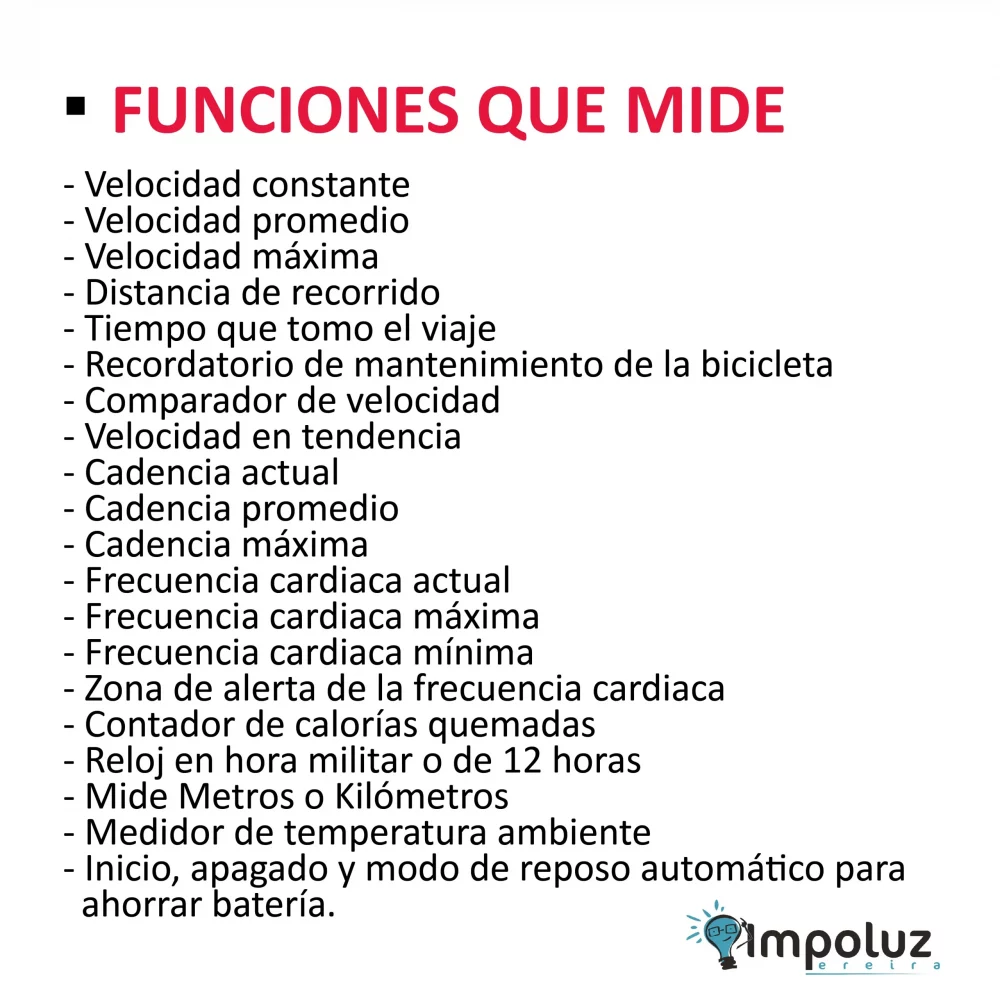 Experimenta un nuevo nivel de rendimiento y precisión con nuestro velocimetro bicicleta. Este avanzado odometro digital no solo te brinda información detallada sobre tu velocidad actual, máxima y media, sino que también registra la distancia recorrida, la frecuencia cardíaca, las calorías quemadas y la temperatura ambiente. Con una pantalla amplia y clara, puedes acceder fácilmente a todas estas funciones mientras montas en tu bicicleta, manteniéndote informado y motivado en cada viaje.
